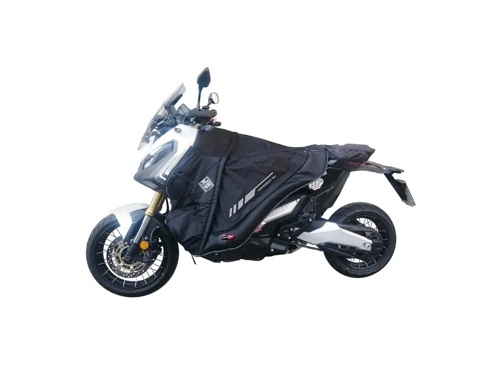 Deka Tucano Urbano Termoscud®, která je speciálně navržena pro skútry HONDA XADV od r.v. 2017. Deka je nepromokavá díky vrchnímu materiálu ze silného nylonu, má podlepené voděodolné švy a vnitřní část deky je podšitá kožíškem což Vám zaručí maximální komfort při jízdě v zimě a špatném počasí. Pro zvýšenou bezpečnost je deka obdařena reflexivními pásy, postranice deky jsou uzpůsobeny tak aby jste mohli dát nohu bezpečně na zem a uchycení okolo pasu či krku je na suchý zip s možností okamžitého vytržení.
