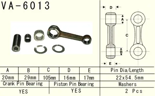 Kompletní specifikace KompatibilitaDíl VESRAH ojniční sada YAMAHA YZ 125 (YZ125) 97-00 (VA6013) vyrobeno v Japonsku je vhodný pro: