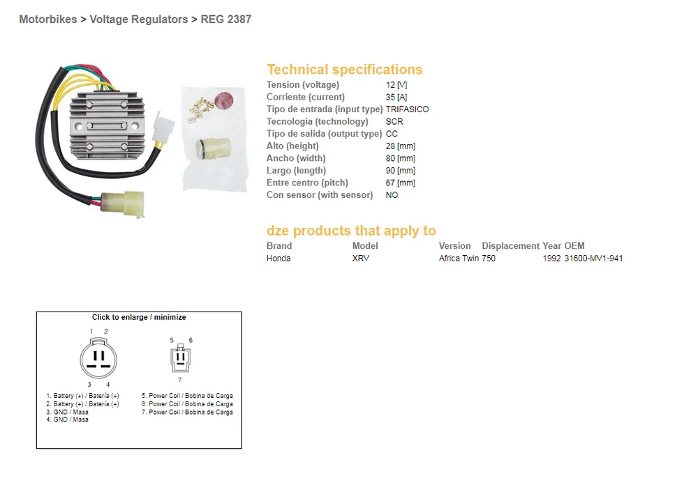 DZE regulátor napětí HONDA XRV 750 AFRICA TWIN 92 (31600-MV1-941) (35A) Levný