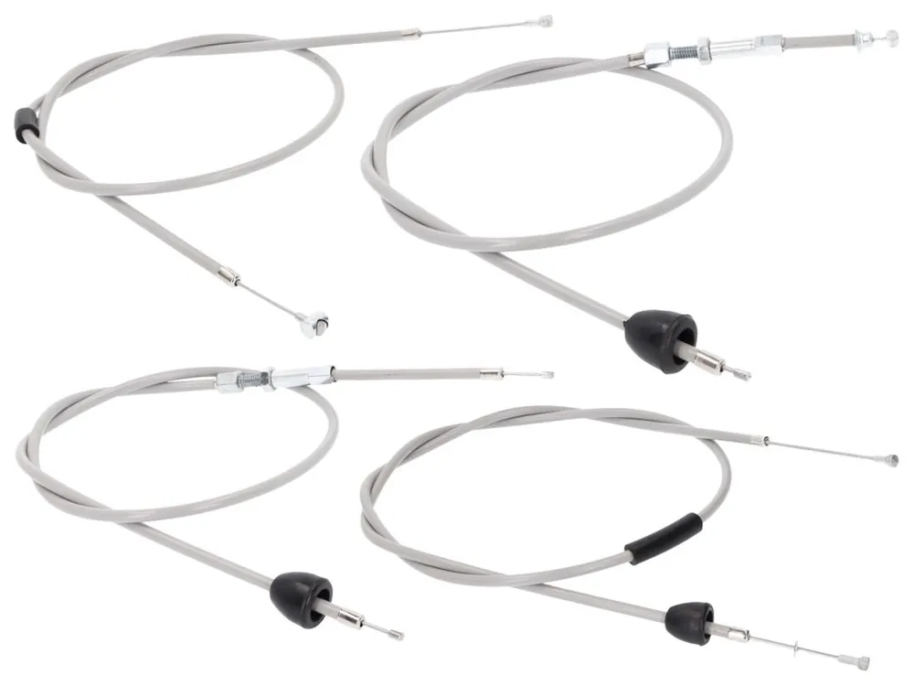 Náhradní sada lanek, v šedé barvě, je vhodná pro stroje Simson Schwalbe KR51/2. Sada se skládá z plynového lanka, spojkového lanka, lanka sytiče a předního brzdového lanka.