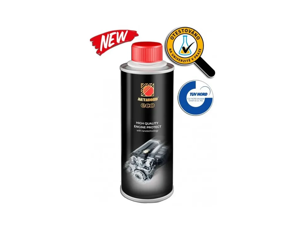 Metabond ECO je zušlechťovač kovových povrchů spalovacích motorů osobních automobilů. Obsahuje keramické nanočástice (h-BN). Po aplikaci Metabond ECO dojde k významnému snížení tření a ke zlepšení mazání. Díky zušlechtění kovových povrchů a následnému snížení tření výrazně prodlužíte životnost motoru.Metabond ECO neobsahuje chlór, síru, fosfor ani PTFE (Teflon). Je plně filtrovatelný. Nereaguje s olejem ani nemění jeho vlastnosti. Nezpůsobuje korozi barevných kovů.POUŽITÍ ADITIVA DO MOTORŮBalení zahřejte přibližně na teplotu 30°C (například v teplé vodě nebo na radiátoru). Důkladně protřepejte a přilijte obsah balení do oleje v motoru. Metabond ECO se doporučuje přidávat do nového oleje při pravidelné výměně. Je možné ho také přidat do již vyměněného oleje, maximálně však do tří tisíc najetých km od této výměny. Metabond ECO se doporučuje přidávat do zahřátého oleje. Následně nechte motor spuštěný 5-10 minut na volnoběh. Jedno balení 250 ml ošetří 4-8l motorového oleje. U motorů s vyšším obsahem oleje použijte dvě balení. Používejte pouze s olejem předepsaným výrobcem automobilu.VÝHODY ADITIVA METABOND ECO DO MOTORŮ Snížení tření až o 60% Zvýšení výkonu motoru o 5 – 10% Prodloužení životnosti motoru Snížení spotřeby paliva o 5 – 15% Snížení emisí ve výfukových plynech Výrazně snižuje opotřebení motoru při studených startechSKLADOVÁNÍSkladujte v suchu při teplotách -10 až +40 stupňů Celsia. Po otevření spotřebujte do 2 let.Charakteristické vlastnostiKód barvy ASTM-D 1500-077,5 ASTMKinematická viskozita při 40 °C, STN EN ISO 3104:1996200 mm2/sKinematická viskozita při 100 °C, STN EN ISO 3104:199620 mm2/sČíslo kyselosti (TAN) ASTM D 664-072,5 mg KOH/gCelkové číslo zásaditosti (TBN) ASTM D 4739-0821 mg KOH/gKorozivní účinek na destičky z mědi (100 °C, 1 hod.) EN ISO 2160:20001a – stupeň koroze