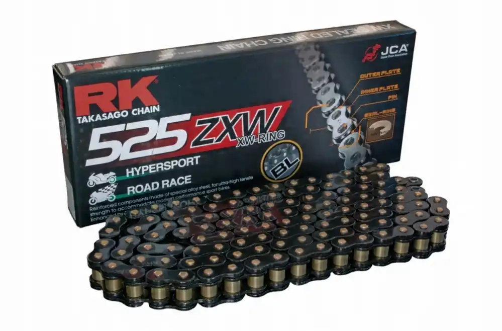 Nová Kolekce RK hnací řetěz BL525ZXW-120 (XW-RING) nýtovací spojka (CLF) v sadě barva černá (objem: do 1200 ccm) (42 KN)