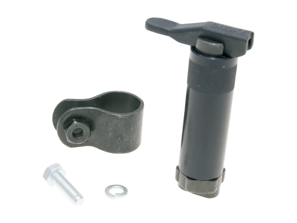 Univerzální páčka sytiče pro montáž na motorové pouzdro nebo rám. Precizně vyrobená páčka se dá pomocí objímky umístit na libovolné místo kapotáže.