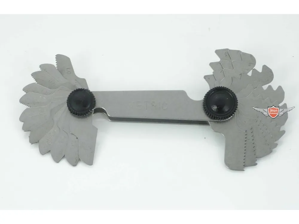 Metrická měrka stoupání závitů pro Hercules, Kreidler a Zündapp. Pomáhá předejít poškození způsobenému nesprávnými maticemi.