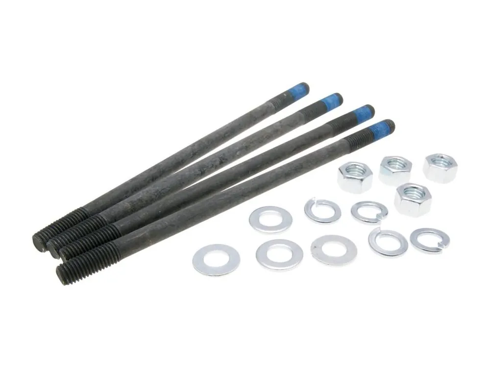 Sada stojanových šroubů válce pro Vespa Cosa, PK, PX, Primavera, Sprint a Super. Vhodná jako náhrada za ulomené či poškozené kusy. S maticemi a podložkami