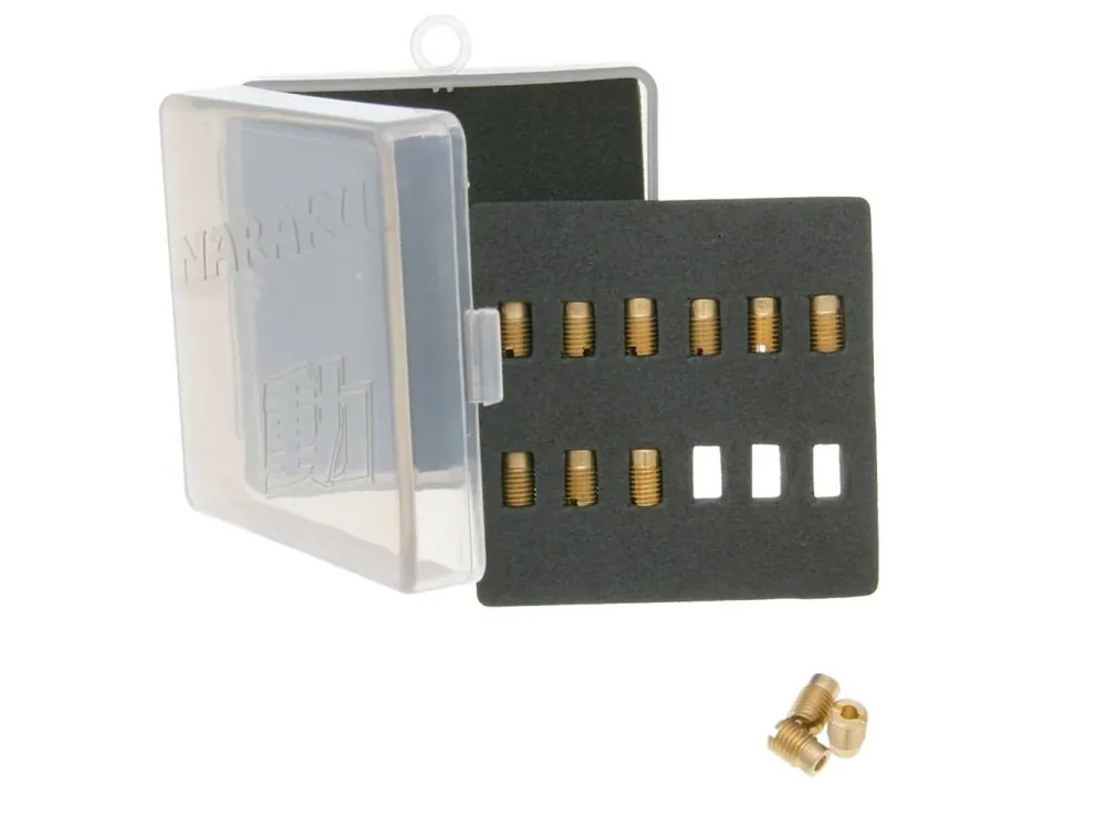 Sada trysek Naraku Gurtner – 12 kusů 50-72 – Sada trysek pro jemné doladění směsi karburátoru. Tuto sadu velmi doporučujeme při koupi vzduchového filtru nebo jakékoliv úpravy.