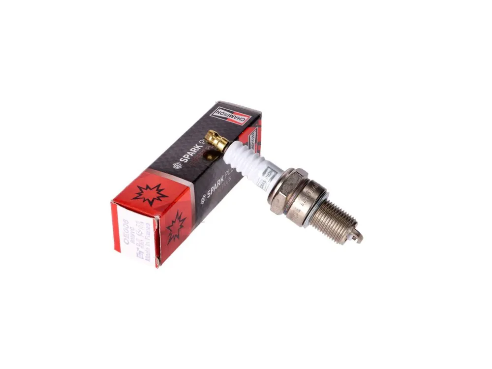 Zapalovací svíčka Champion montovaná ve výrobním provedení do strojů Piaggio.