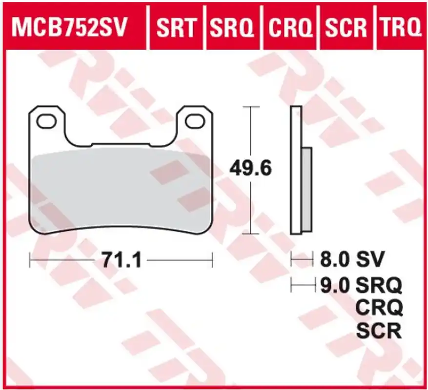 Kompletní specifikace KompatibilitaDíl TRW ZF LUCAS brzdové destičky KH379 sintrované sintrované závodní výkonné na dráhu (nahrazuje MCB752SRQ) je vhodný pro: