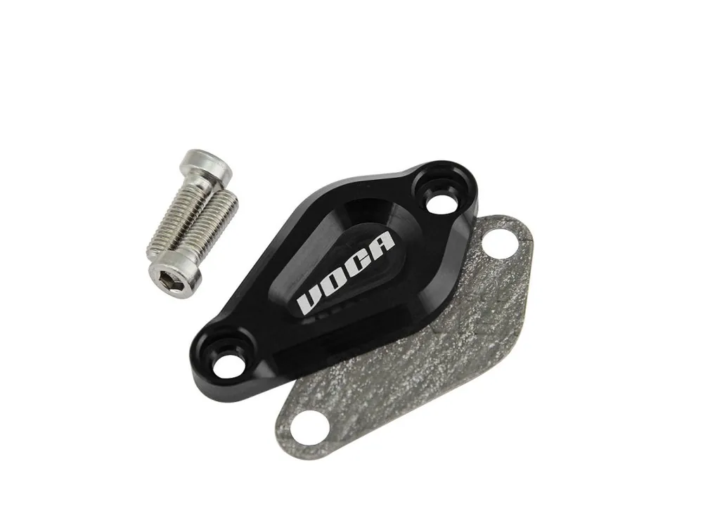 Černý kryt olejového čerpadla Voca vyrobený technologií CNC. Kryt olejového čerpadla se dodává s těsněním a dvěma pochromovanými šrouby z nerezové oceli.Vysoce kvalitní příslušenství. Vhodné pro motory Minarelli AM6 a Derbi EBE, EBS a D50B.
