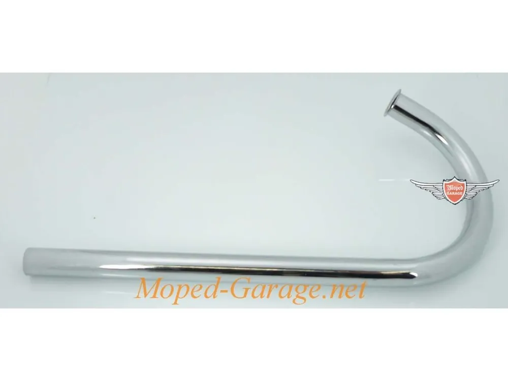 Chromované výfukové koleno vhodné pro NSU Quickly Moped. Určeno pro tento model a navrženo tak, aby odpovídalo jeho připojení i tvaru ohybu.